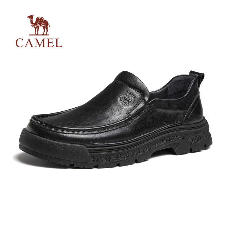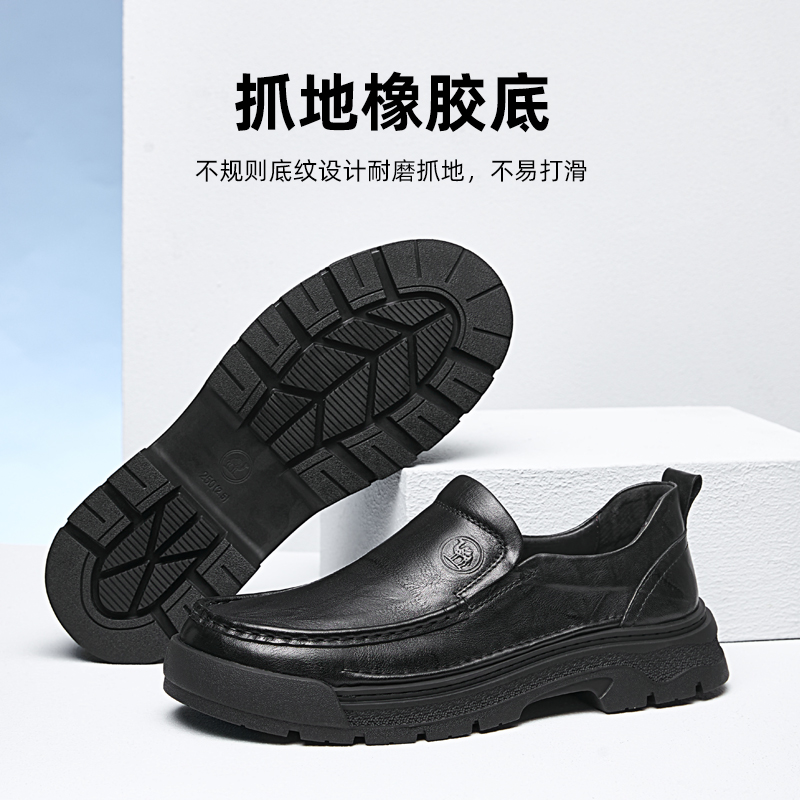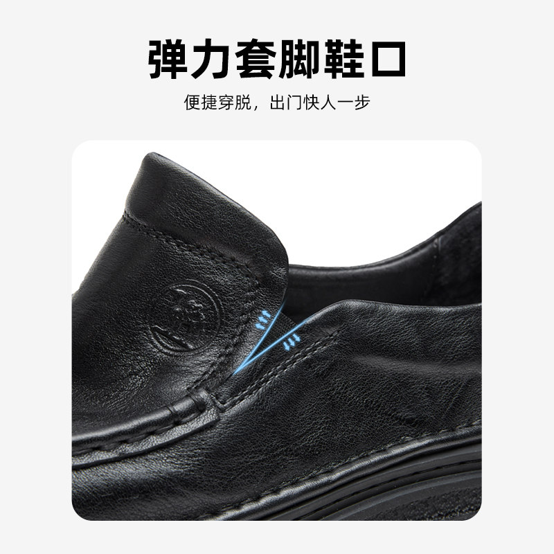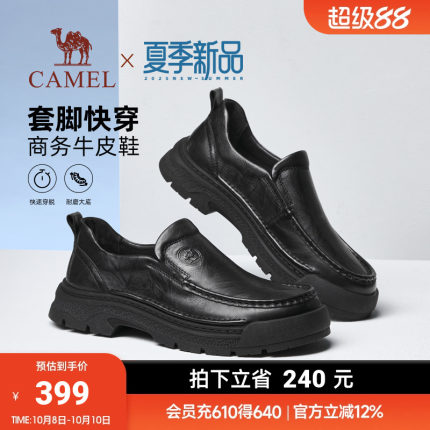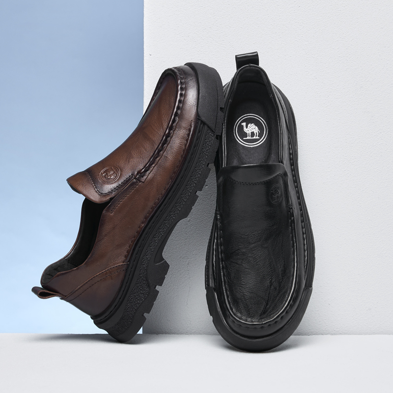 骆驼男鞋2025秋季新款舒软牛皮套脚快穿增高经典商务皮鞋