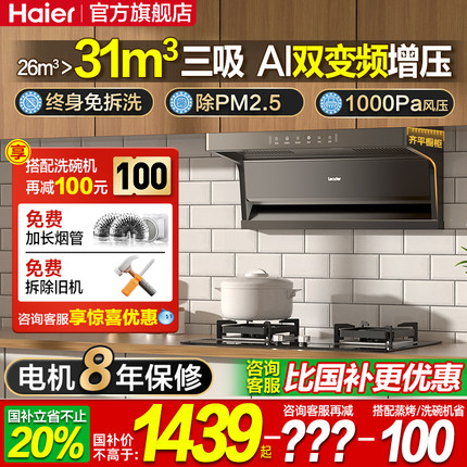 海尔统帅抽油烟机燃气灶套餐烟机灶具套装吸油烟机煤气灶一体9762