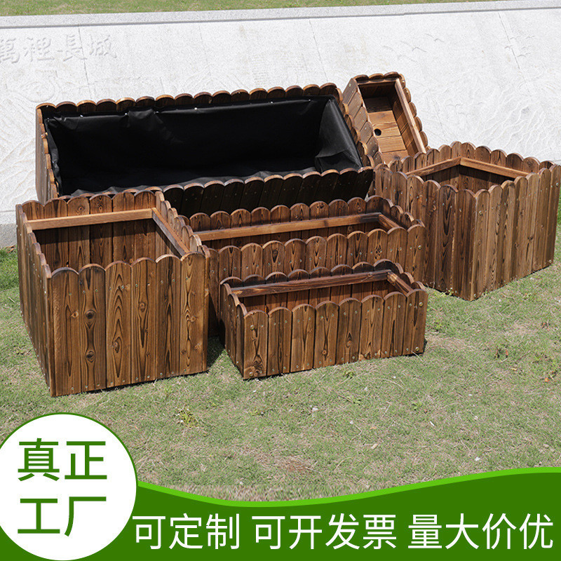 防腐木花箱户外实木半圆形碳化种菜盆花槽种植箱花盆阳台厂家