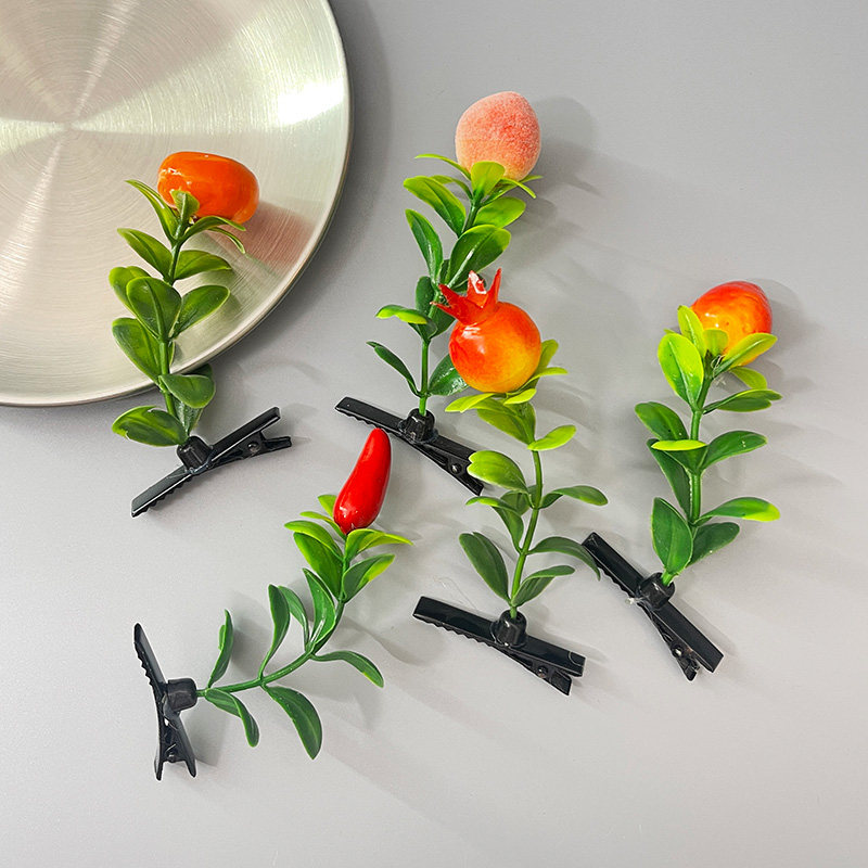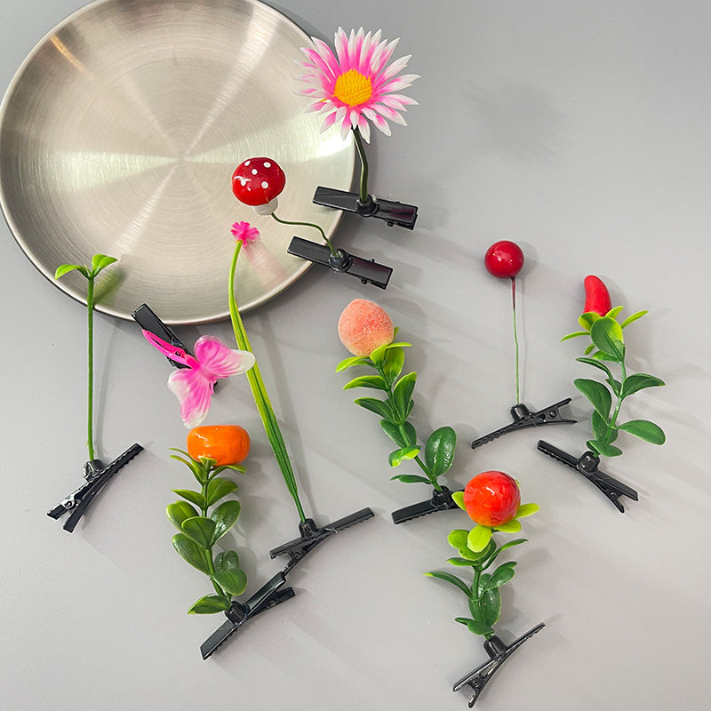 可爱植物花卉头上长草花果实水果桃子搞怪卖萌发夹发卡子鸭嘴夹女