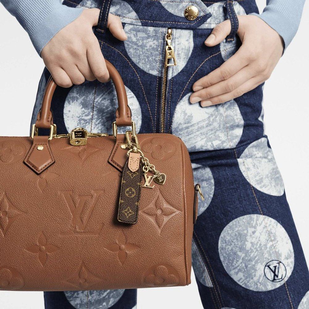 自营1h可退 欧洲直邮LV路易威登女士棕色 金色牛皮金属元素钥匙扣