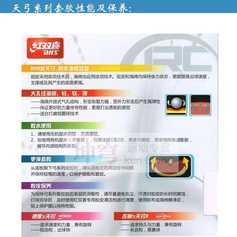 正品DHS红双喜天弓3三天弓五5高弹柔性蛋糕海绵乒乓球反胶皮套胶