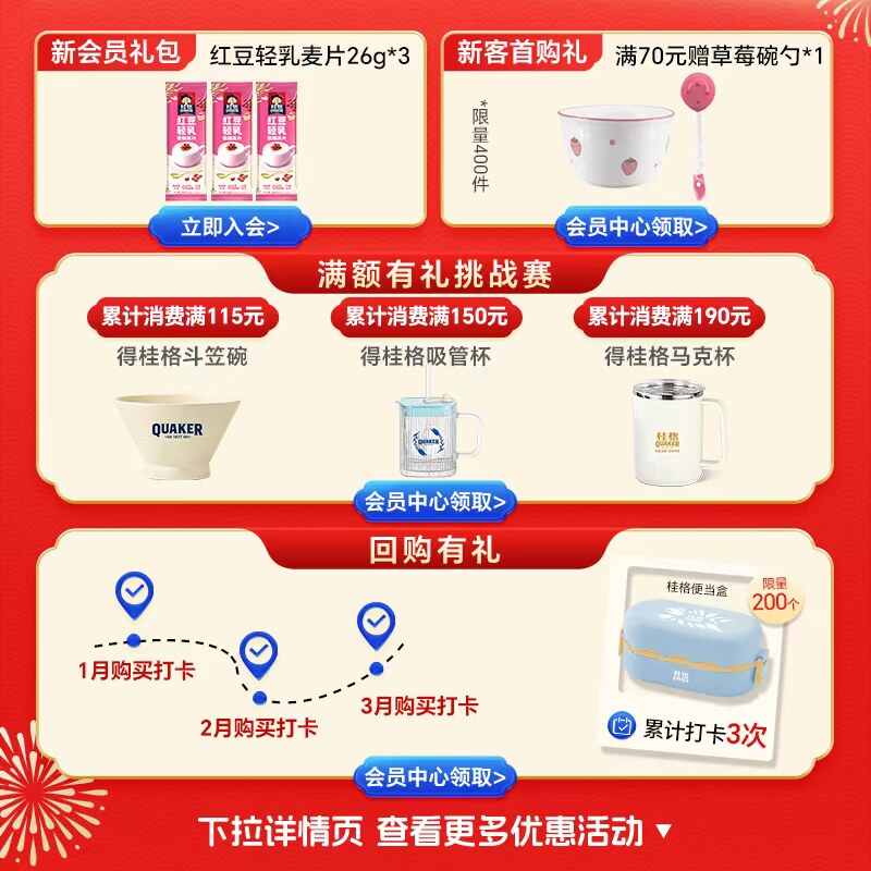 【秒杀】桂格燕麦片特浓牛奶红枣醇香540g*2袋装速食冲饮营养燕麦