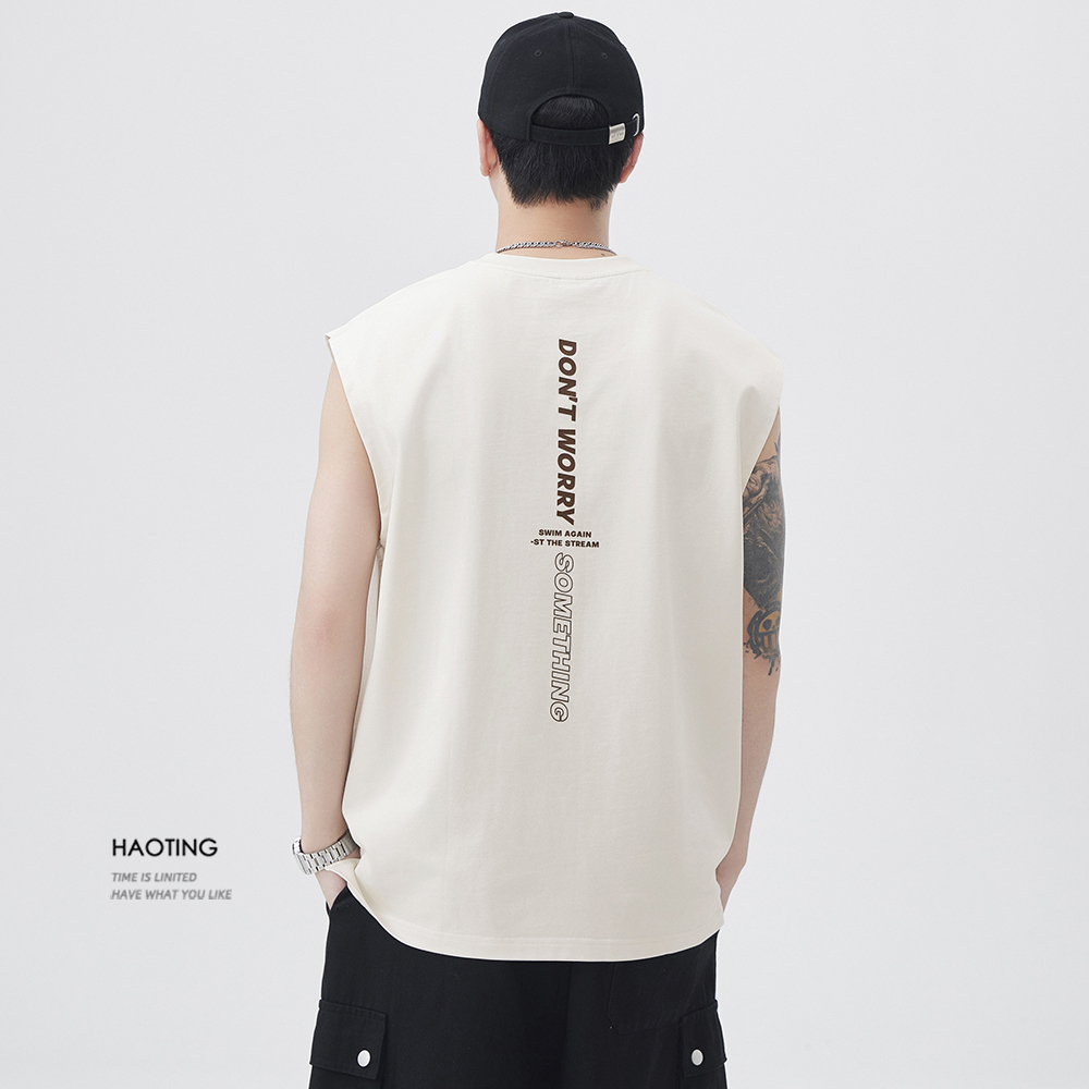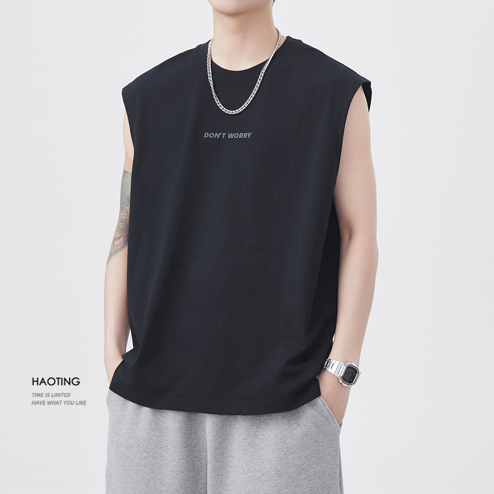豪霆休闲简约无袖背心男2025夏季新款宽松印花纯棉运动T恤上衣潮