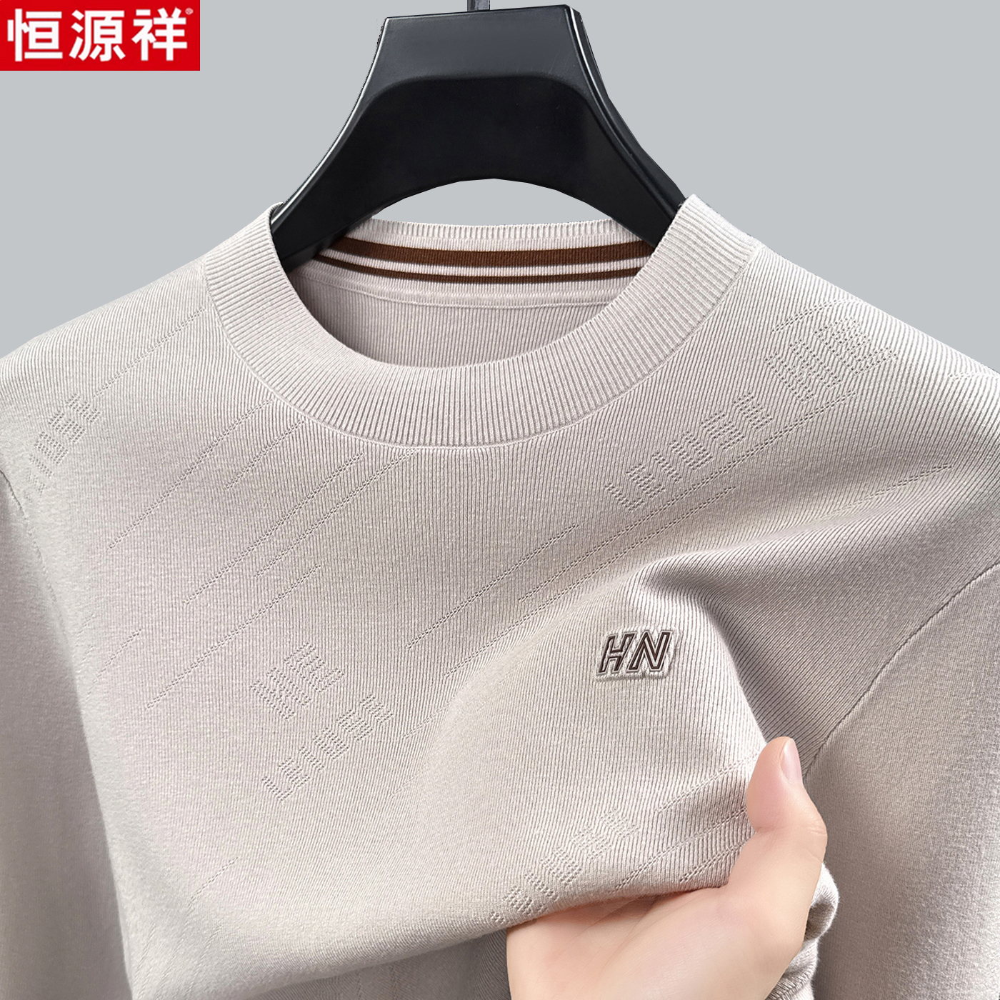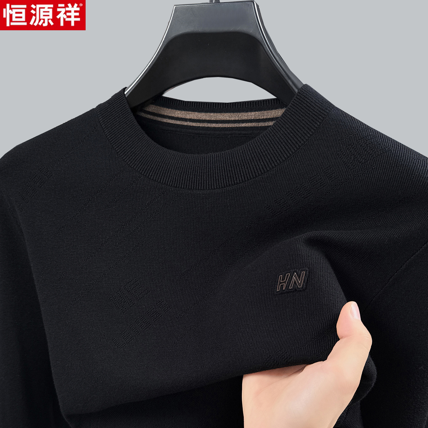 恒源祥春秋经典精纺纯羊毛衫男薄款圆领毛衣高端可机洗羊绒打底衫