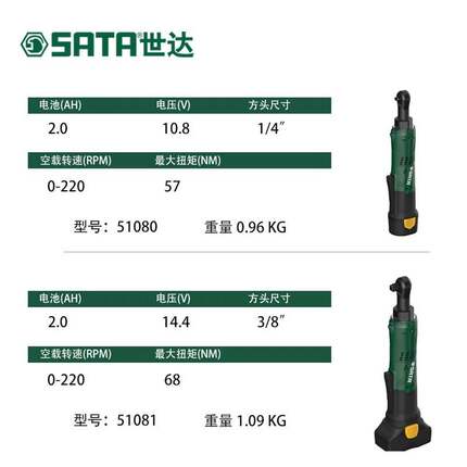 世达10.8V/14.4V充电式锂电棘轮快速扳手90度角向电动飞扳子51080