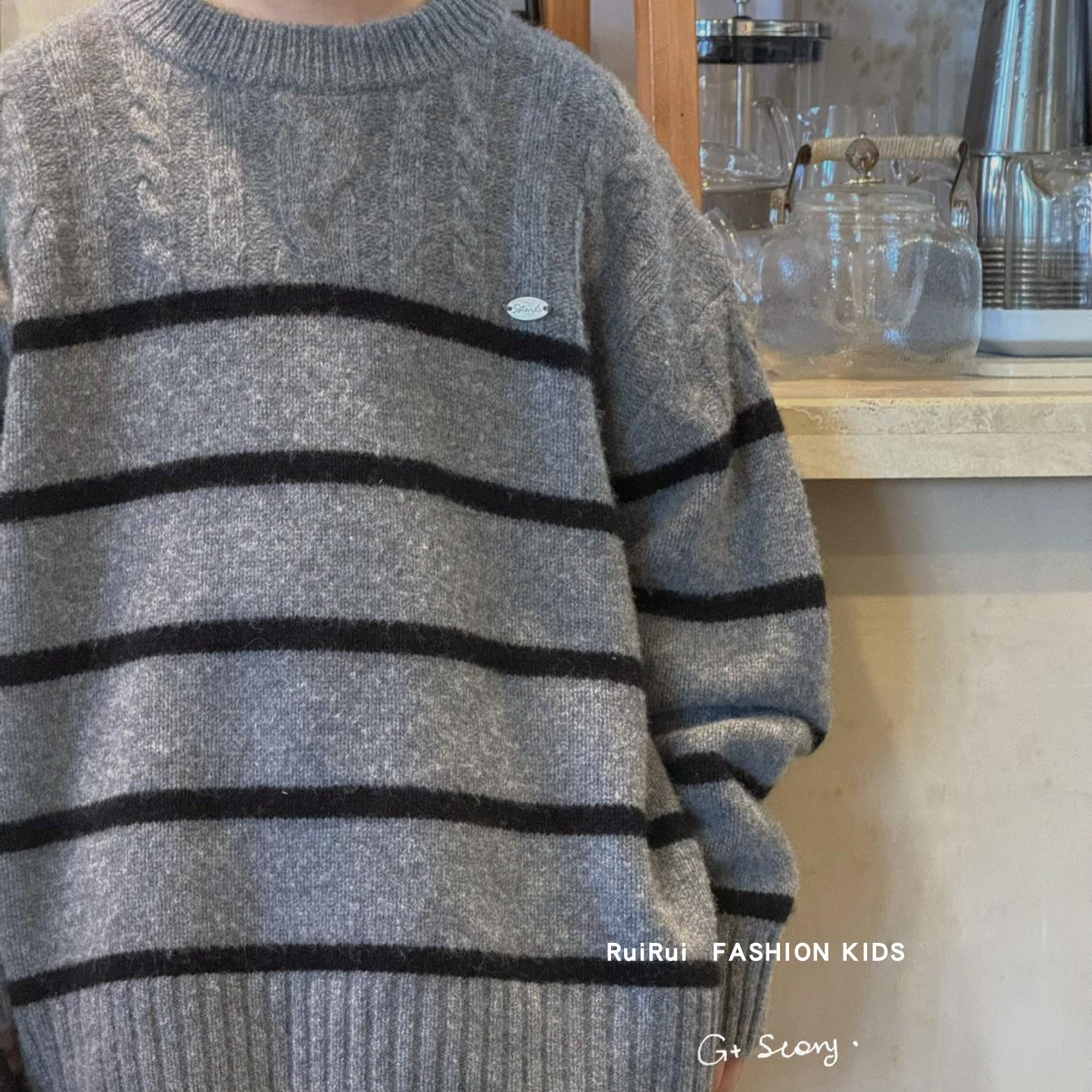 G+童装2024冬季新款男女童针织衫中大童韩版百搭条纹毛衣线衫6897