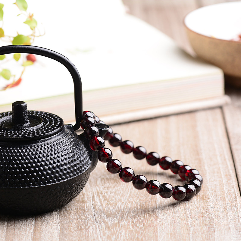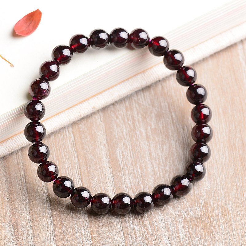 真品天然4A入门级酒红石榴石单圈手链佛珠手串瑞丽女时尚水晶现货