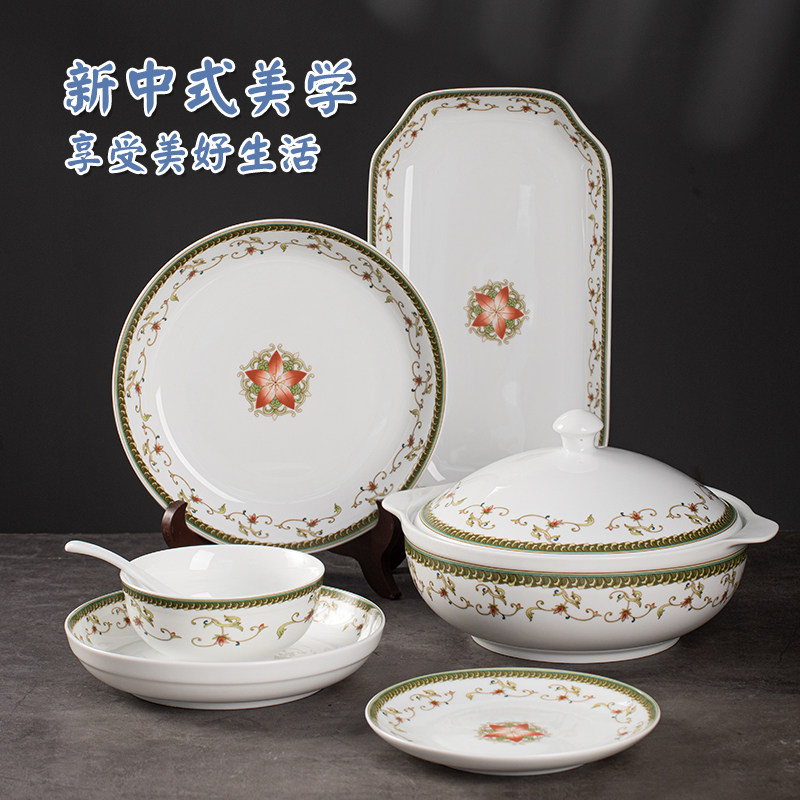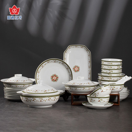 国瓷红叶陶瓷景德镇瓷器碗碟套装家用欧式瓷高档餐具礼盒