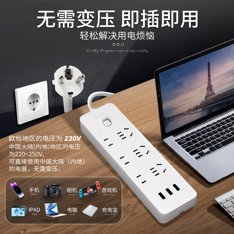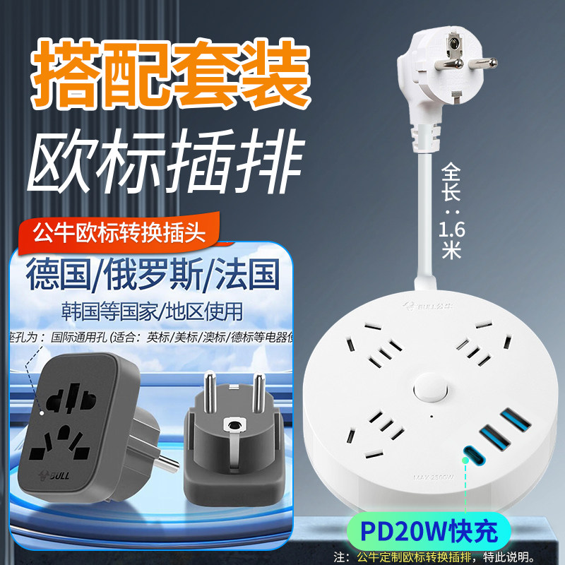 公牛欧标插线板韩国转换插头插排德标泰国转换器圆盘插座圆头欧洲