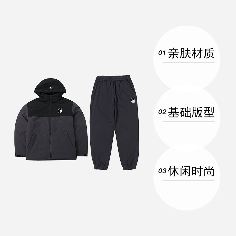 【自营】MLB套装男装女装休闲保暖棉羽外套羽绒服休闲小脚裤长裤