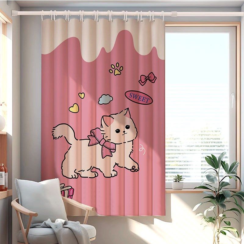 202新款儿童房便携窗帘免打孔遮光出租房窗户伸缩杆卧室飘窗遮阳