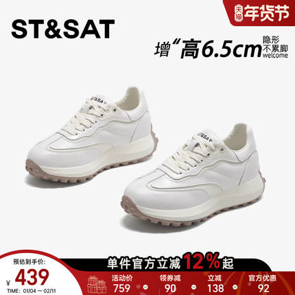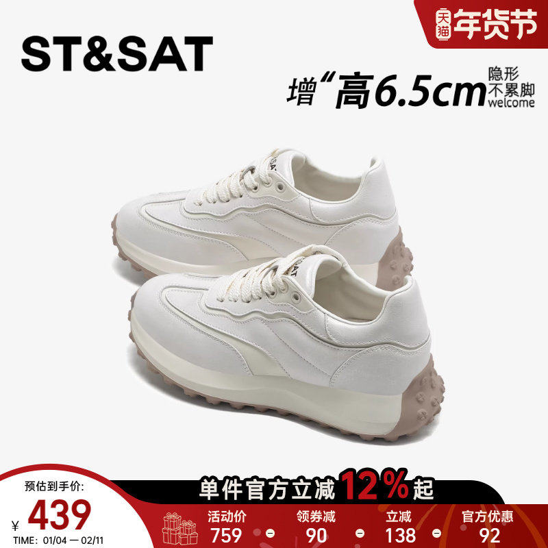 星期六隐形内增高德训鞋女新款轻便软底舒适小白女鞋厚底百搭阿甘