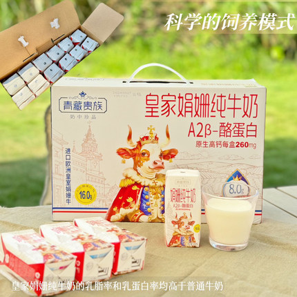 青藏贵族皇家娟姗纯牛奶200mlx12盒/箱 4.0蛋白 新日期