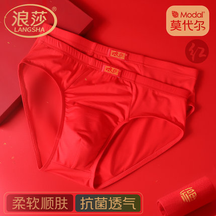 浪莎大红色男士三角内裤莫代尔本命年内裤性感男士三角底裤短裤衩