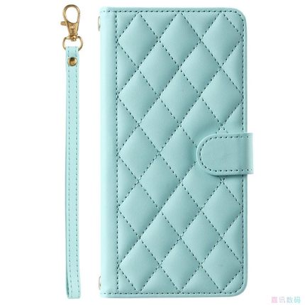 菱形浅绿适用GalaxyS24/S23/S22/S21/S20 ULTRA/Plus+/FE三星翻盖手机壳长挂绳S10/S9/S8/S7斜挎挂脖皮套