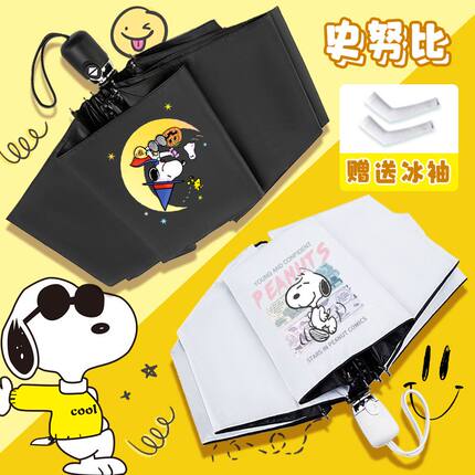 卡通史努比儿童晴雨伞男女孩遮阳防晒黑胶伞学生便携太阳伞双人大
