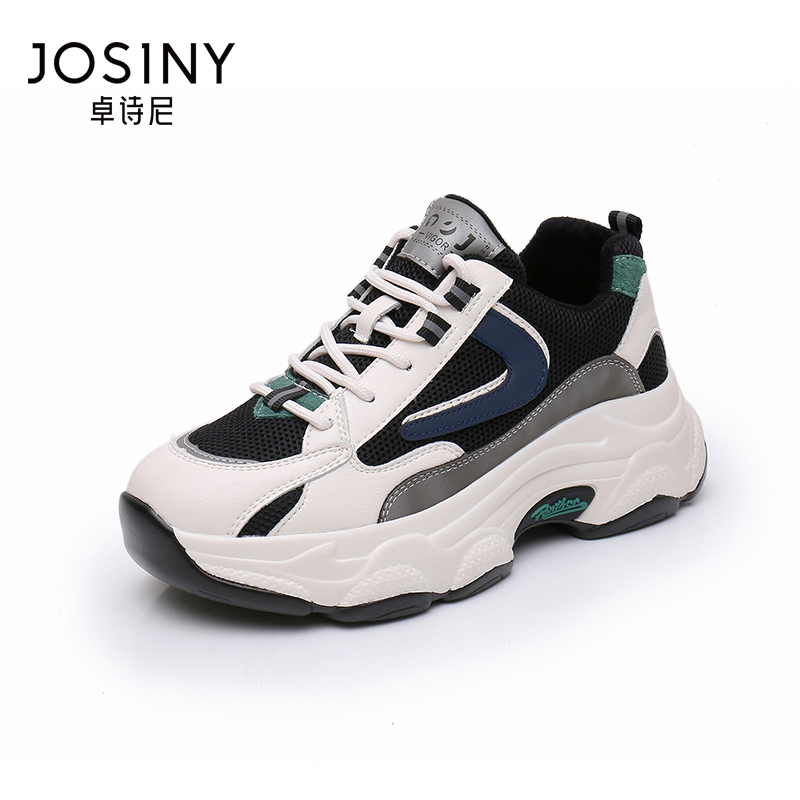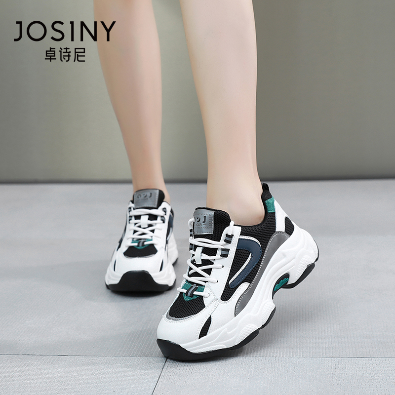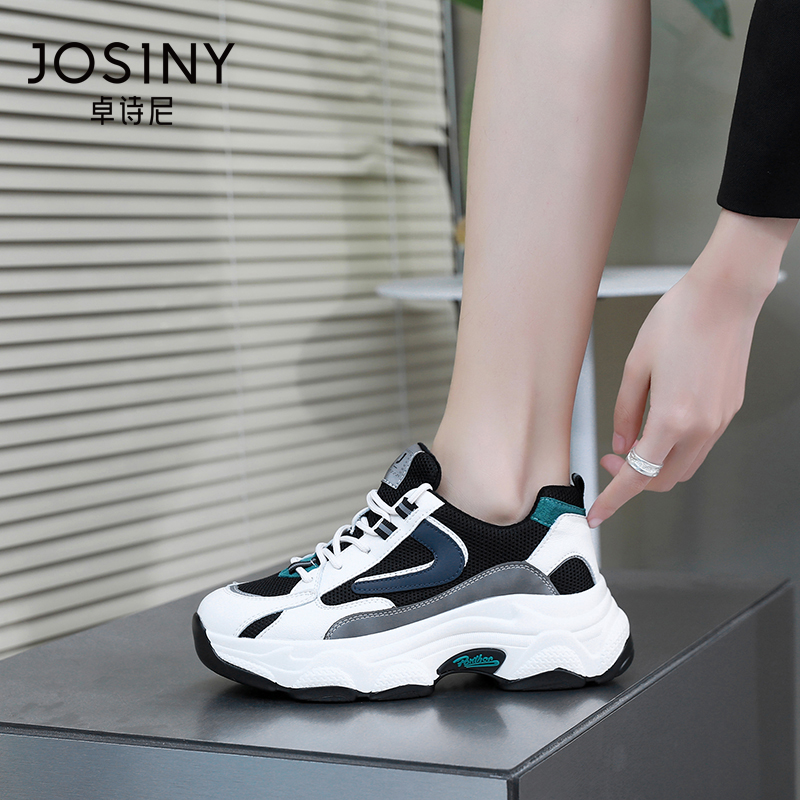 卓诗尼2025秋季新款舒适老爹鞋女时尚百搭厚底网面运动休闲白鞋女