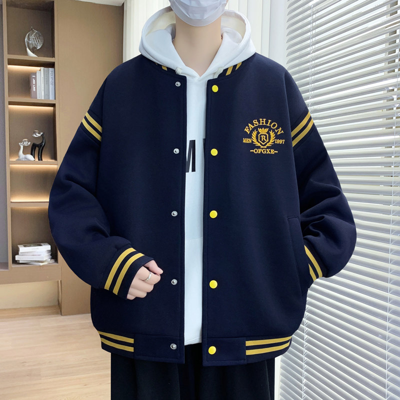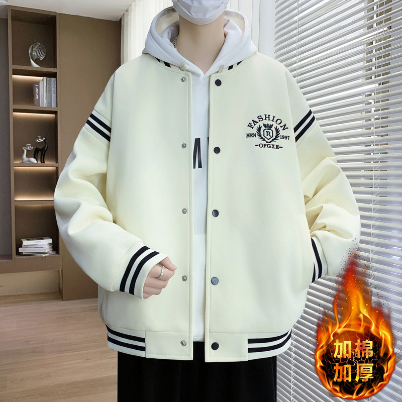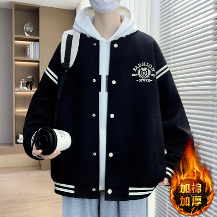 13青少年加棉夹克上衣12岁男孩初中学生15大童秋冬加厚棒球服外套