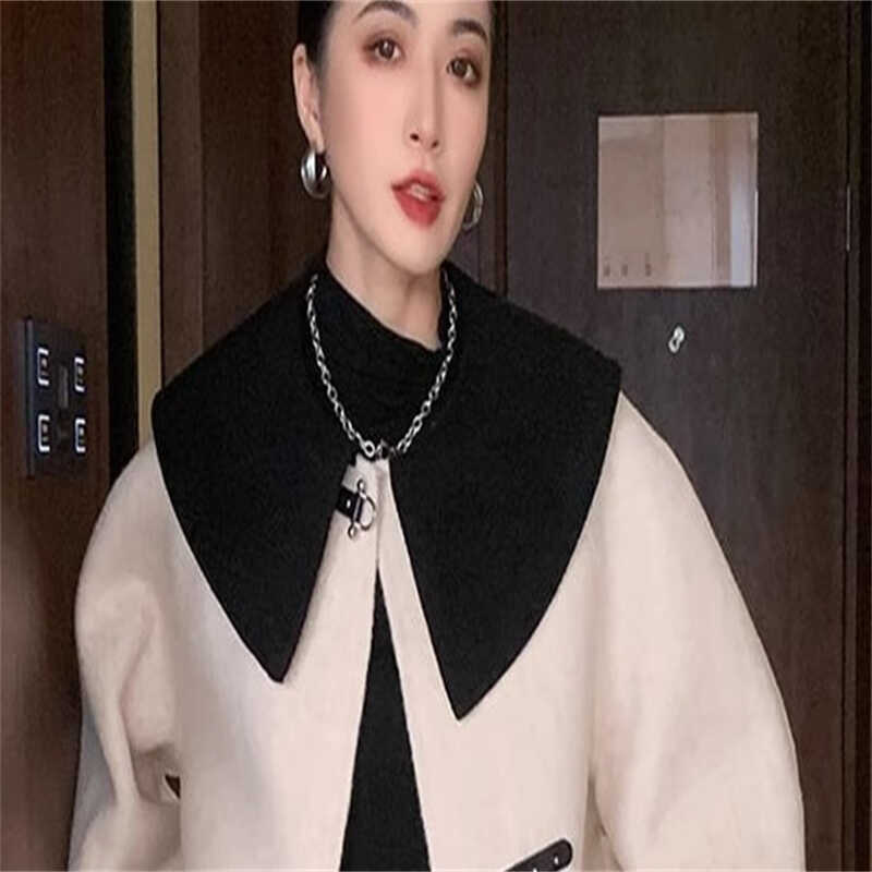 叠穿保暖大翻领假领子外搭女童时尚加厚款娃娃黑色海军领甜美百搭