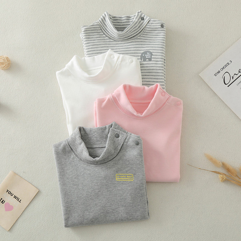 无骨磨毛儿童内衣上装纯棉日系宝宝半高领男女童打底衫中小童A类