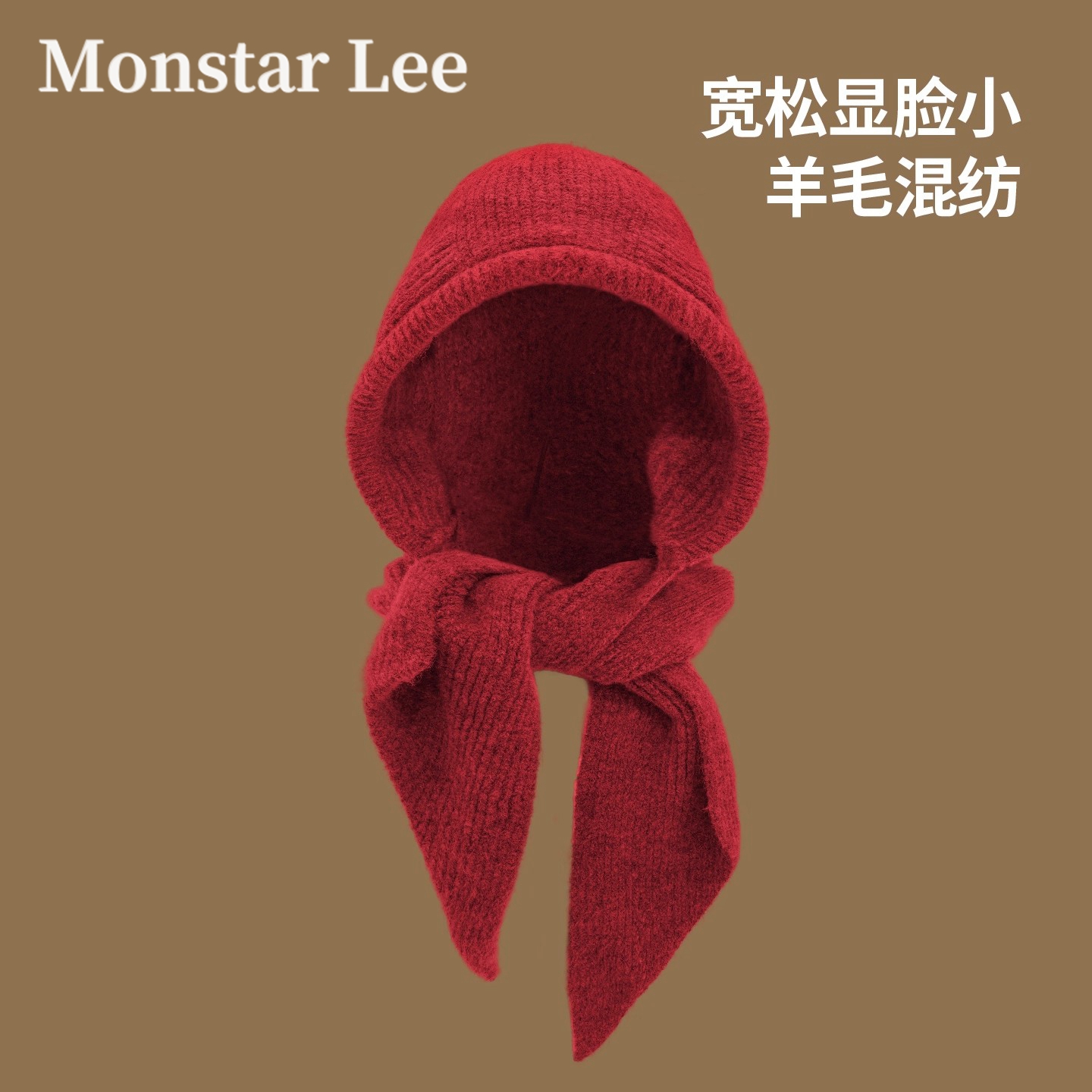 Monstar Lee日本设计师联名款毛线帽子围巾一体连帽冬保暖针织帽