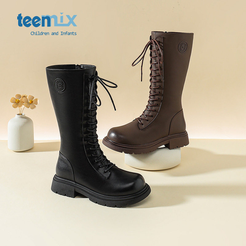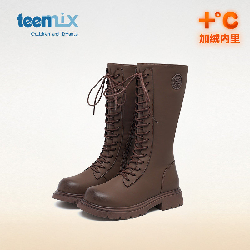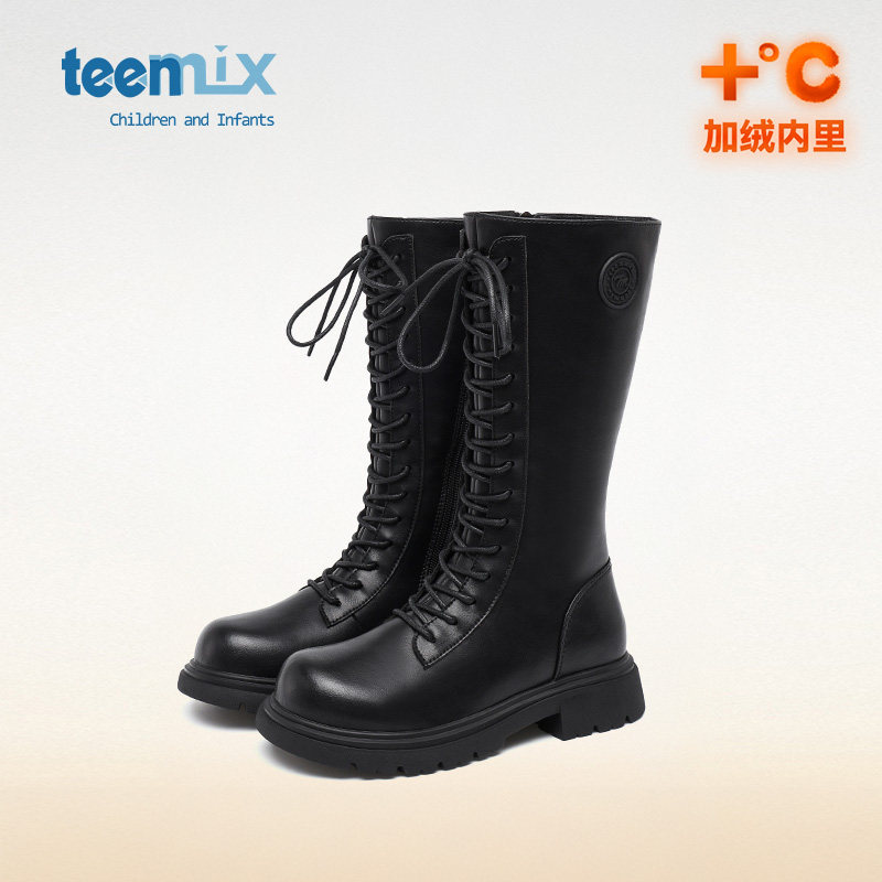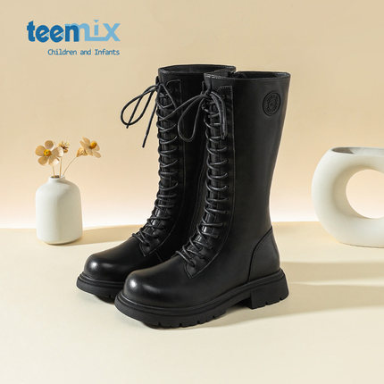 天美意童鞋女童长靴冬季加绒儿童马丁靴子2026新款长筒靴女高筒靴