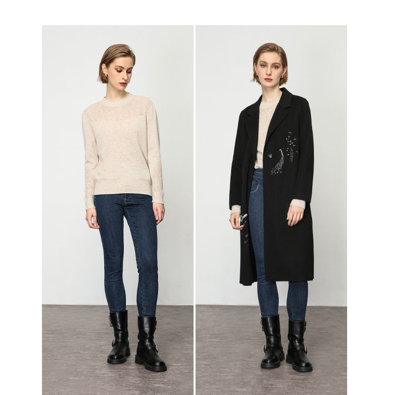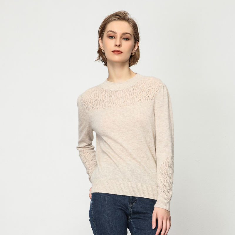 Keywearcloud奇威秋冬米杏色半高领修身羊绒打底衫