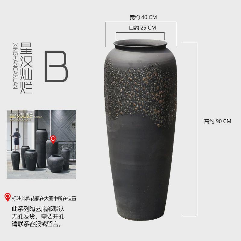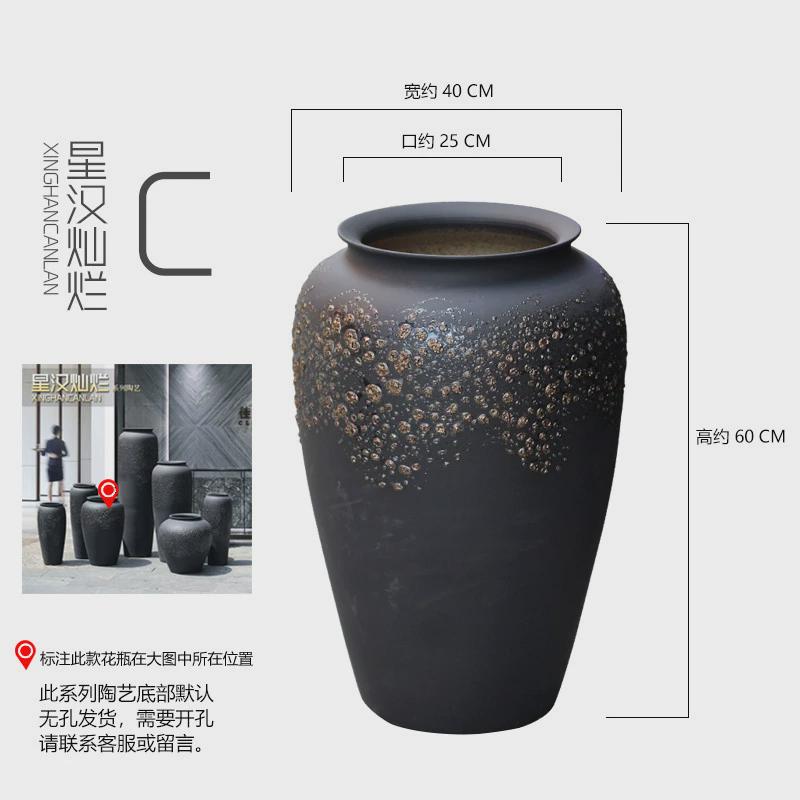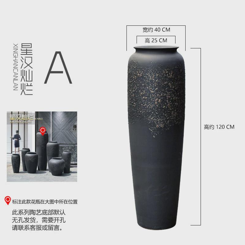 落地黑色酒店大堂现代简约陶瓷花瓶摆件干支陶罐插花器别墅样板房