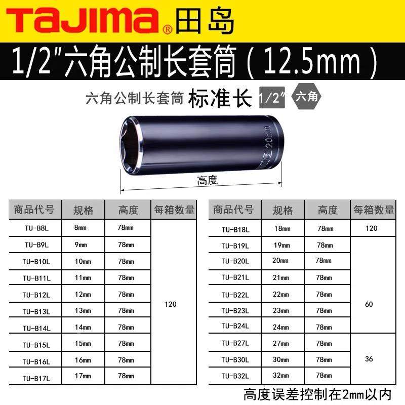 TAJIMA田岛1/2加长梅花套筒大飞公制12角扳手套筒头子12.5mm接头