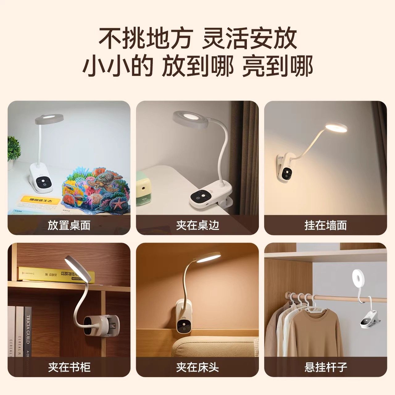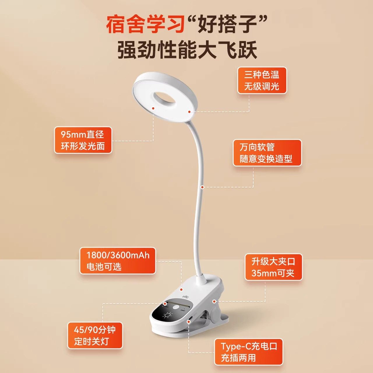 雷士照明护眼夹子灯宿舍学习充插两用三段调光强续航无蓝光台灯