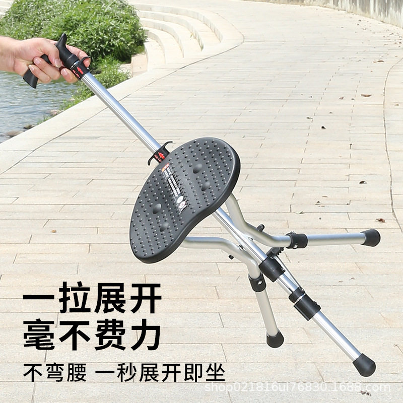 一键打开老人拐杖凳老年拐棍手扙折叠椅子多功能登山杖户外