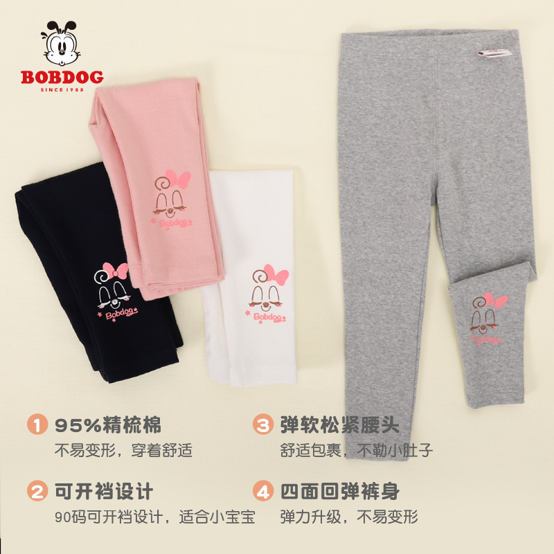 巴布豆儿童打底裤女纯棉外穿薄款春秋2岁女童女宝宝长裤外裤