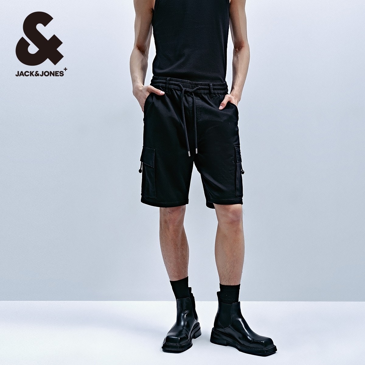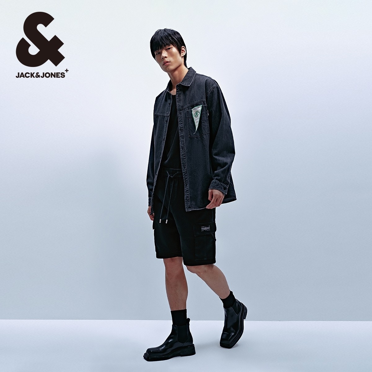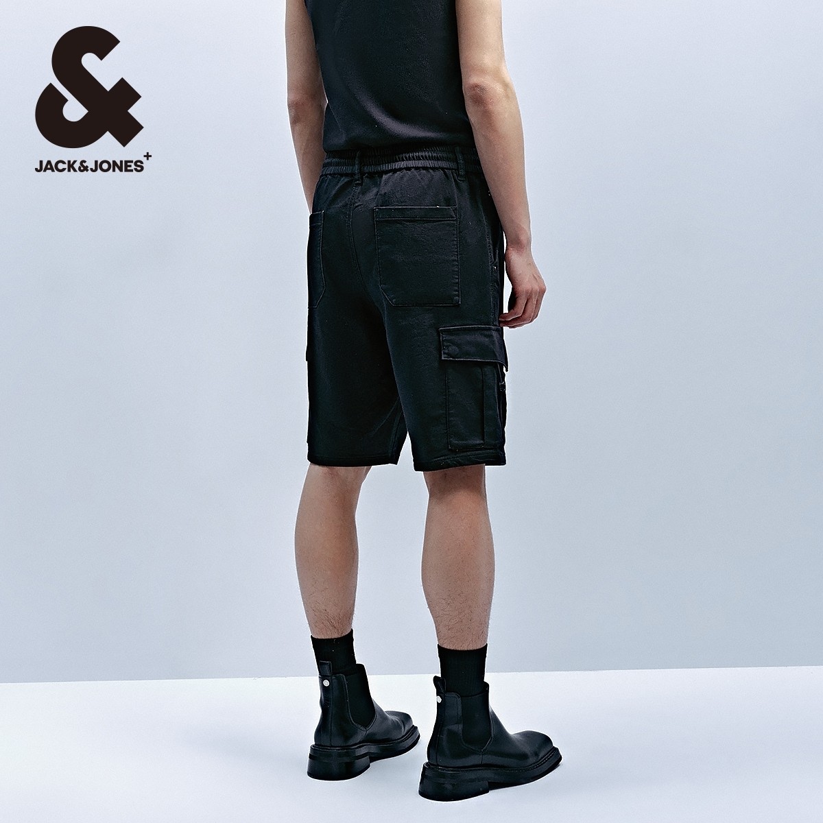 杰克琼斯男装牛仔裤子春季时尚潮工装风舒适黑色直筒牛仔短裤男裤