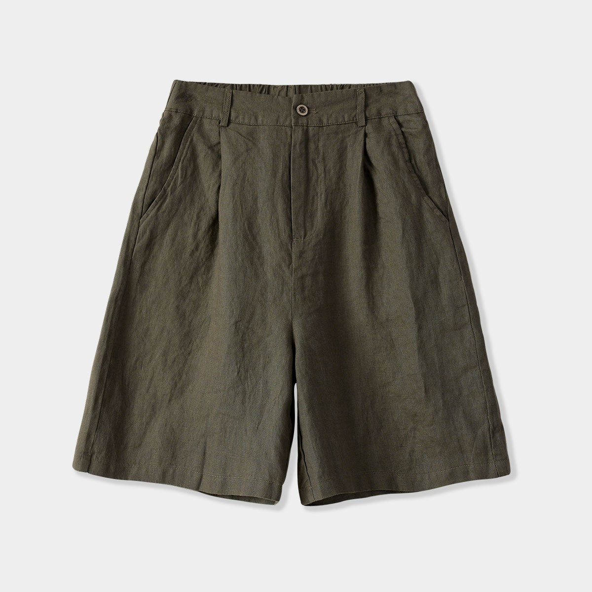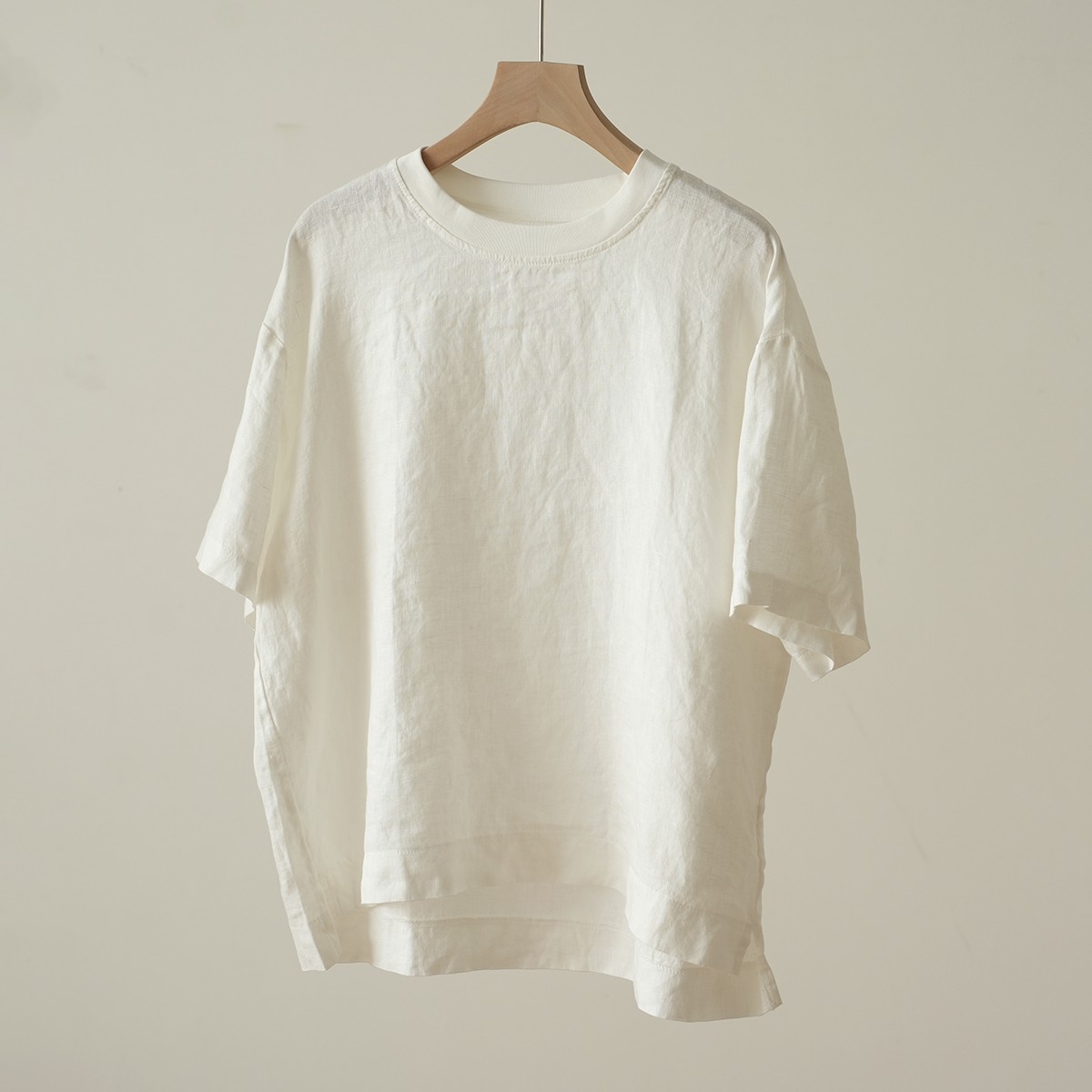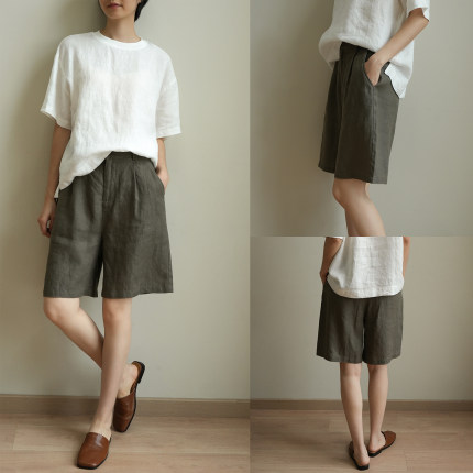 搭配款 14支全亚麻女士宽松开叉T恤 直筒四分裤 复古穆勒鞋 夏季k