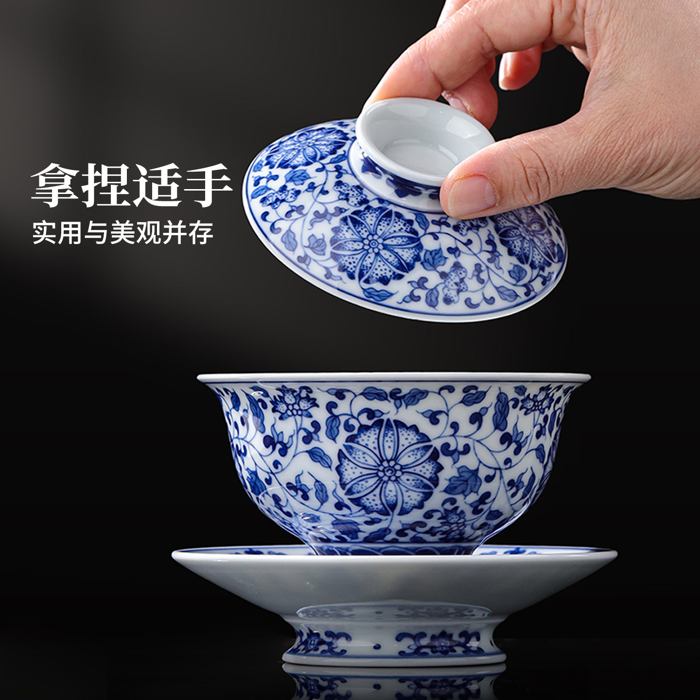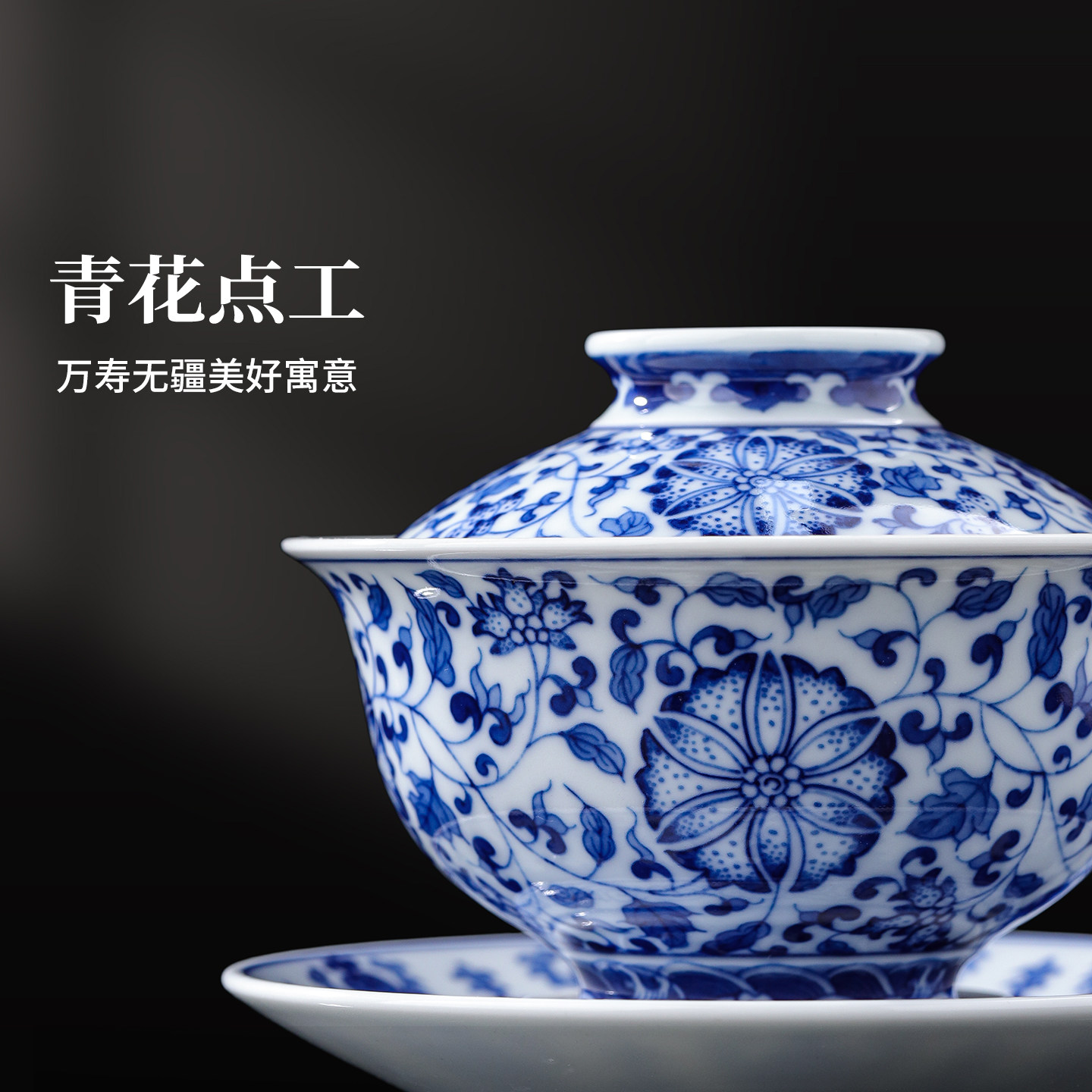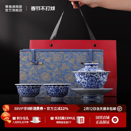 景德镇官方陶瓷青花手绘茶具套装盖碗茶杯家用高端送礼礼盒乔迁礼