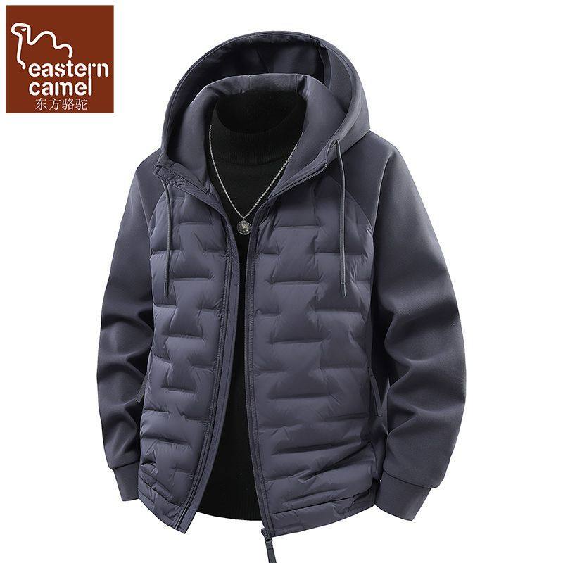 东方骆驼男士轻薄羽绒服2025秋冬装新连帽拼接保暖冬季户外外套潮