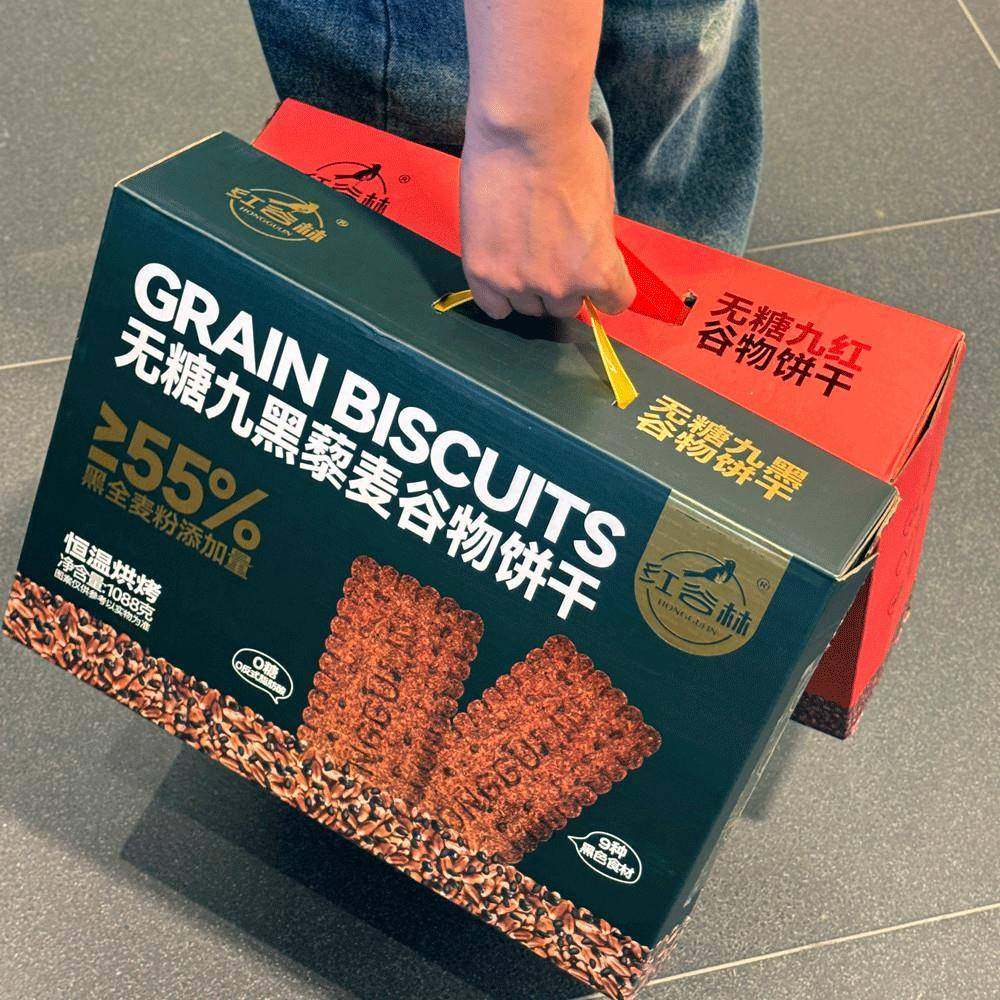 红谷林无糖九红九黑藜麦谷物饼干1088g整箱独立包装粗粮代餐礼盒