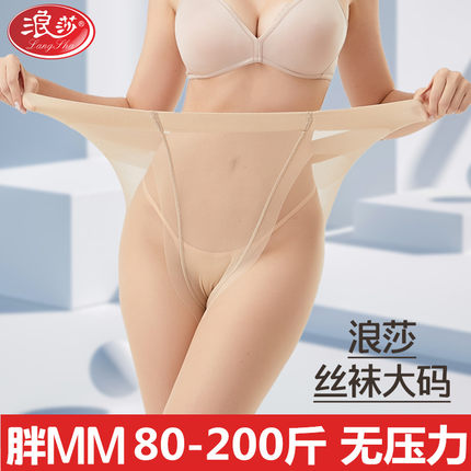 浪莎大码丝袜女薄款防勾丝胖mm200斤连裤袜不掉档长筒肉色丝袜夏