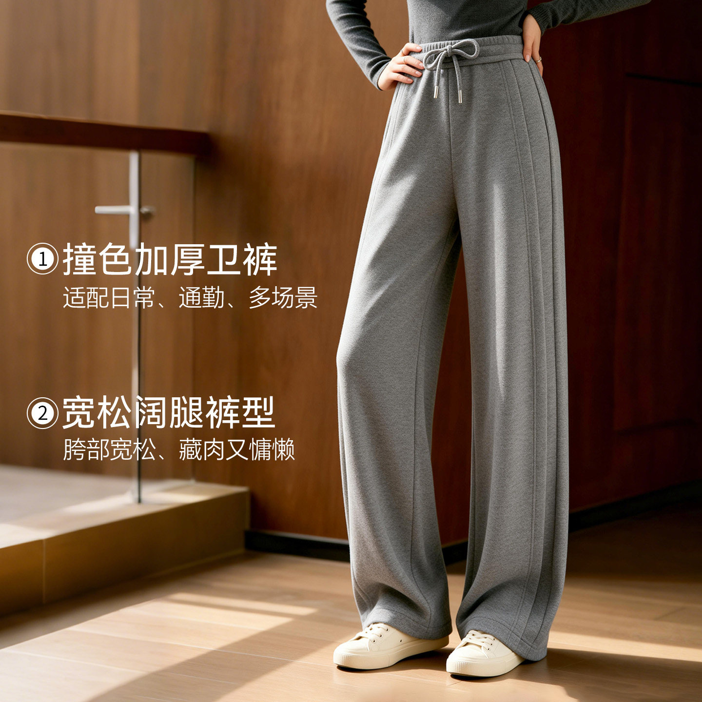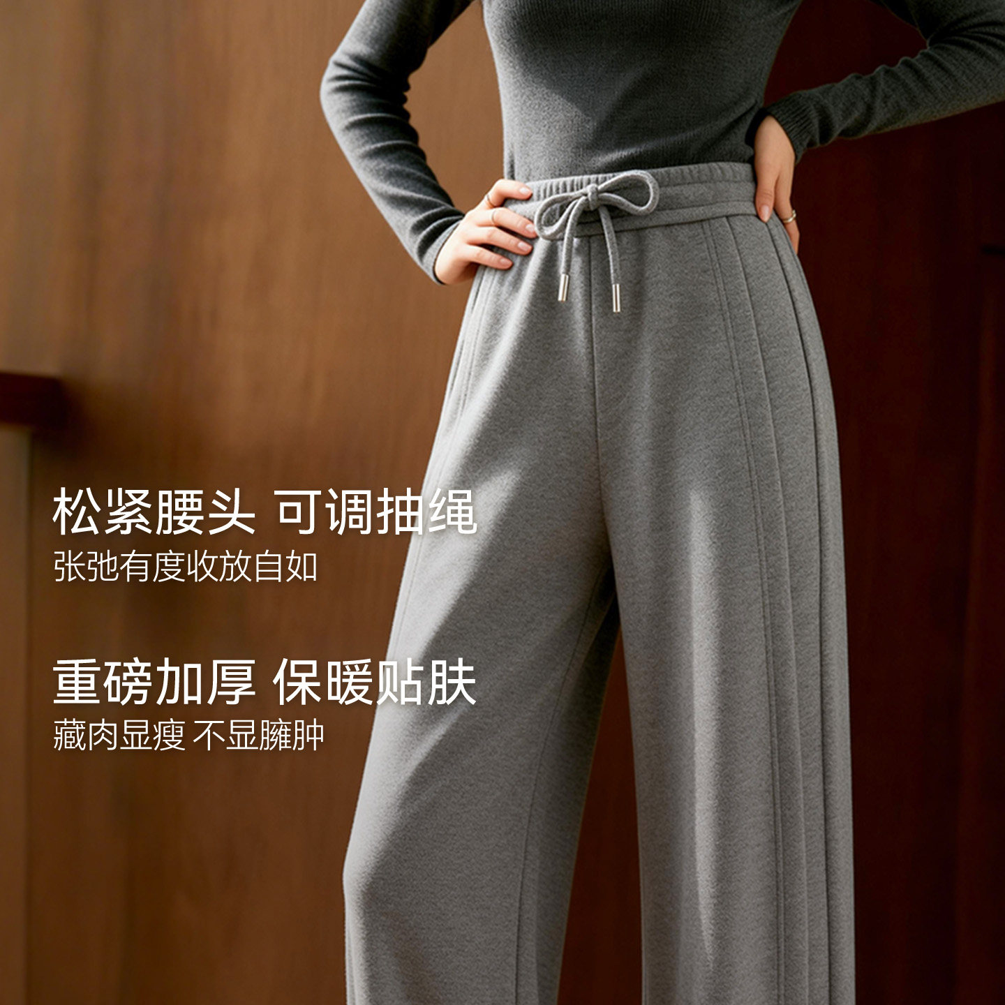 百家好加绒加厚休闲裤女冬季2025新款松紧腰直筒阔腿休闲风长裤子