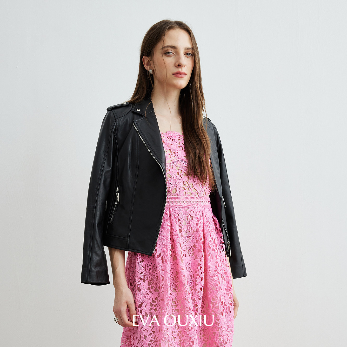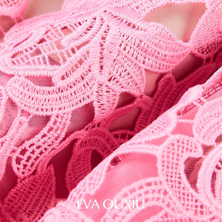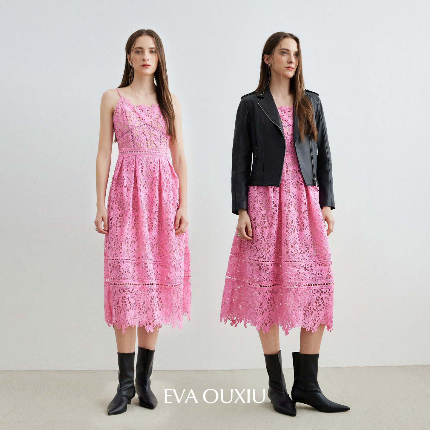 EVAOUXIU高级感吊带连衣裙年会礼服气质收腰精致镂空勾花蕾丝裙子