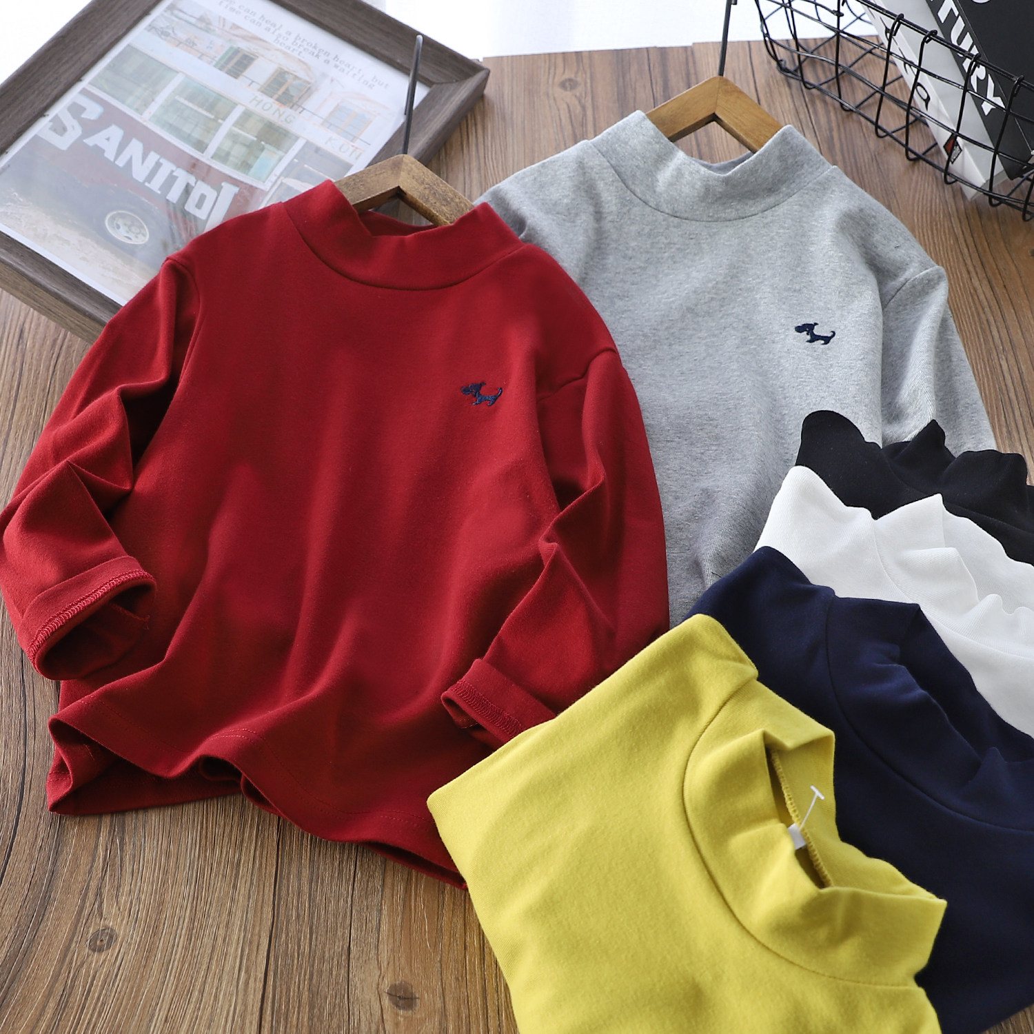 95棉男童半高领打底衫秋冬季中大童儿童纯棉上衣内搭长袖T恤1922