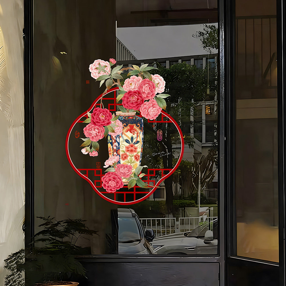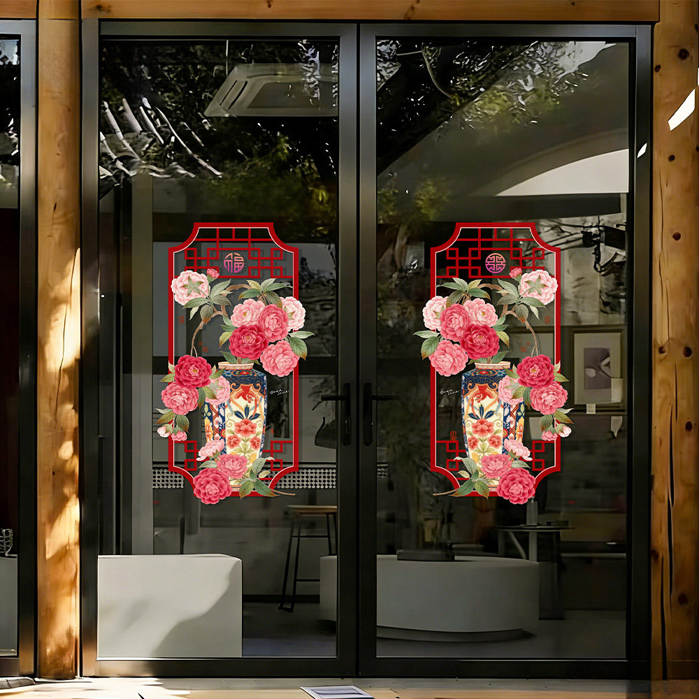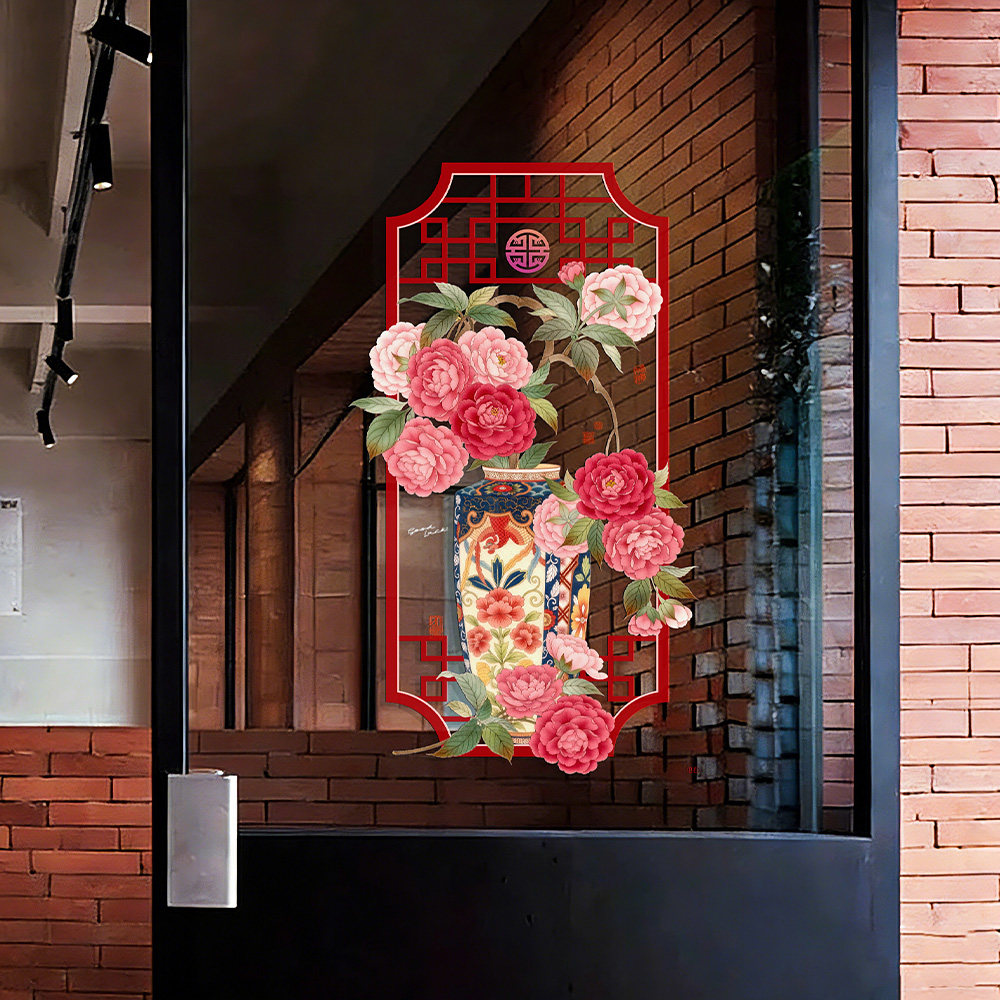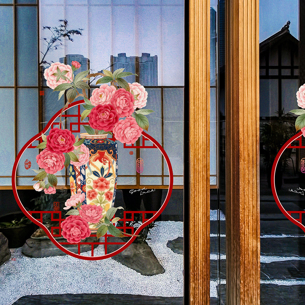 春节中国风富贵满堂玻璃门贴纸新年新款窗花中式牡丹高级感静电贴