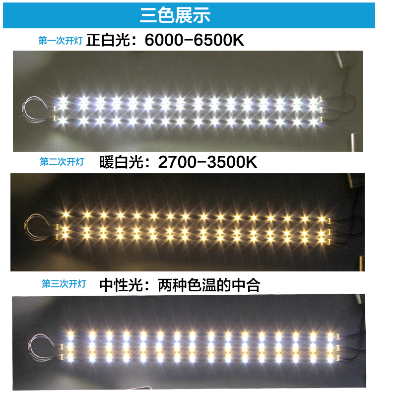 led吸顶灯灯芯改造灯板长条方形光源贴片三色灯管调光客厅led灯条