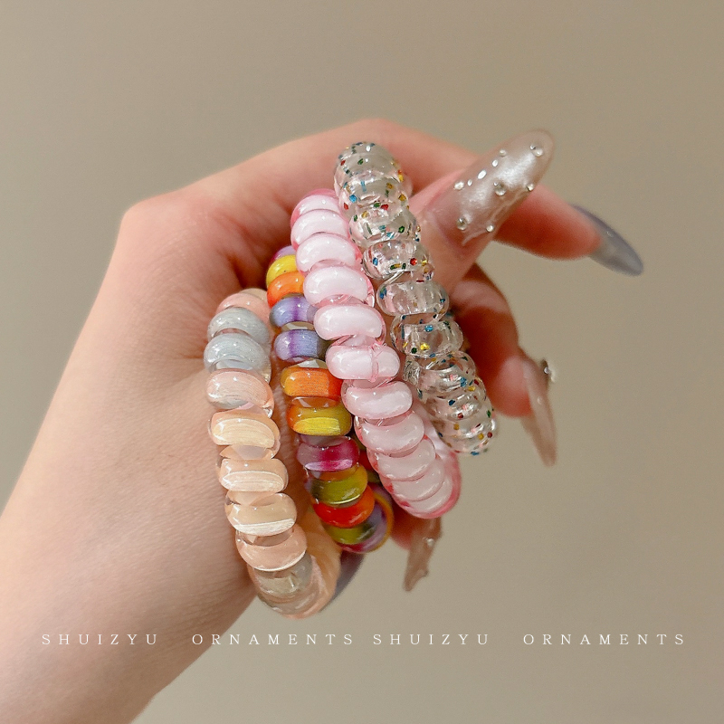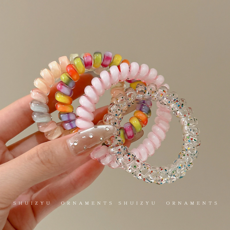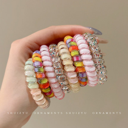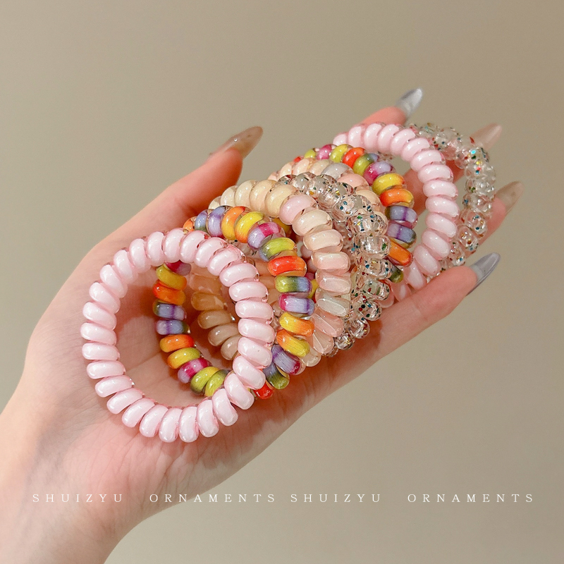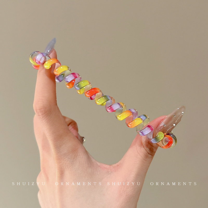 彩虹色渐变电话线发圈女2025新款发绳简约无痕扎头发皮筋头绳头饰