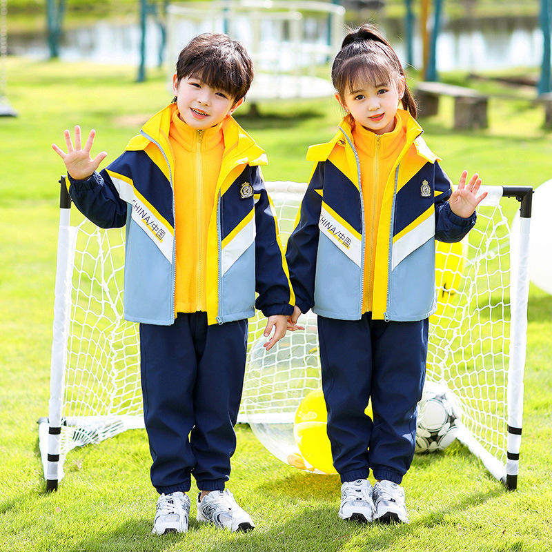 中小学生冲锋衣校服秋冬装儿童班服加绒加厚幼儿园园服冬季三件套