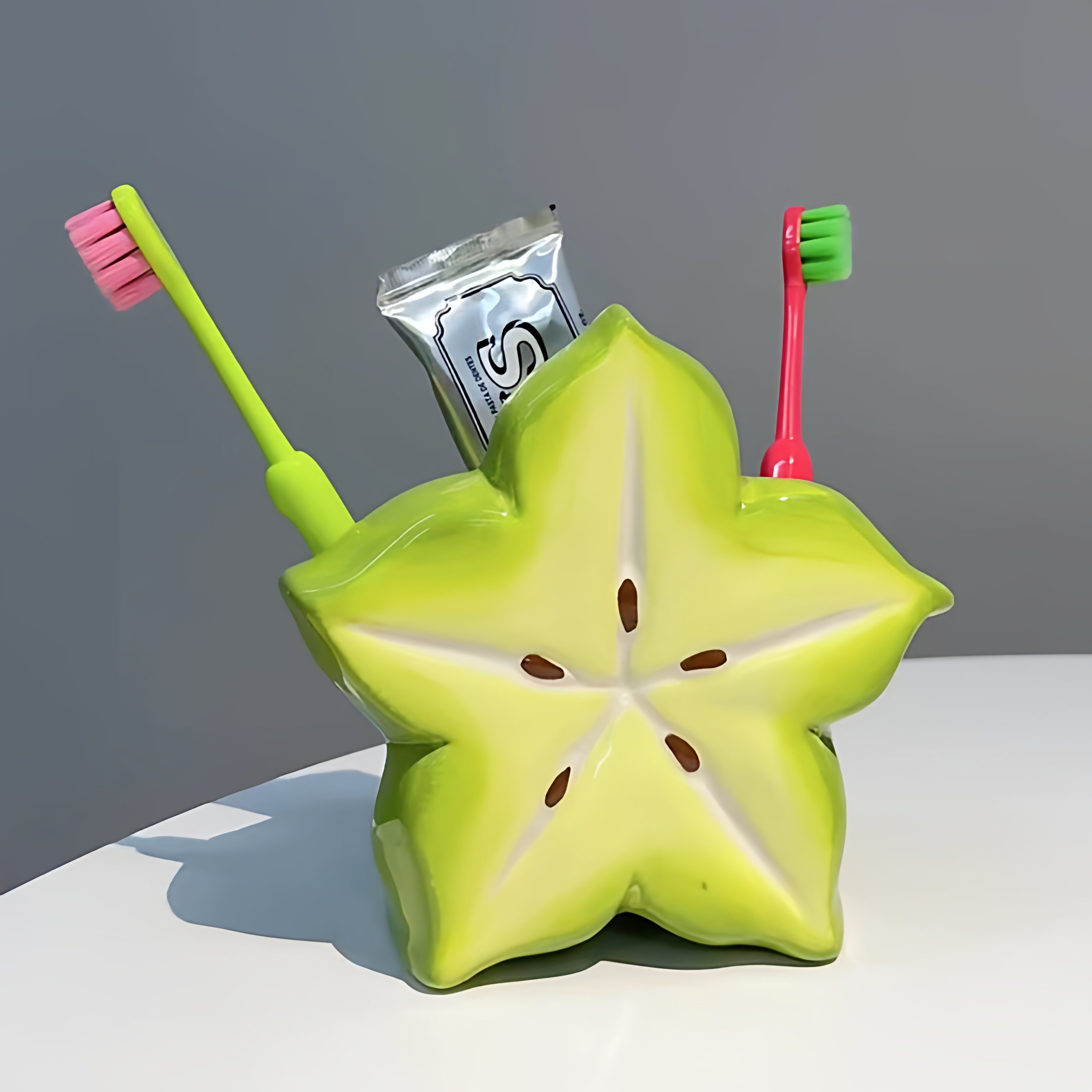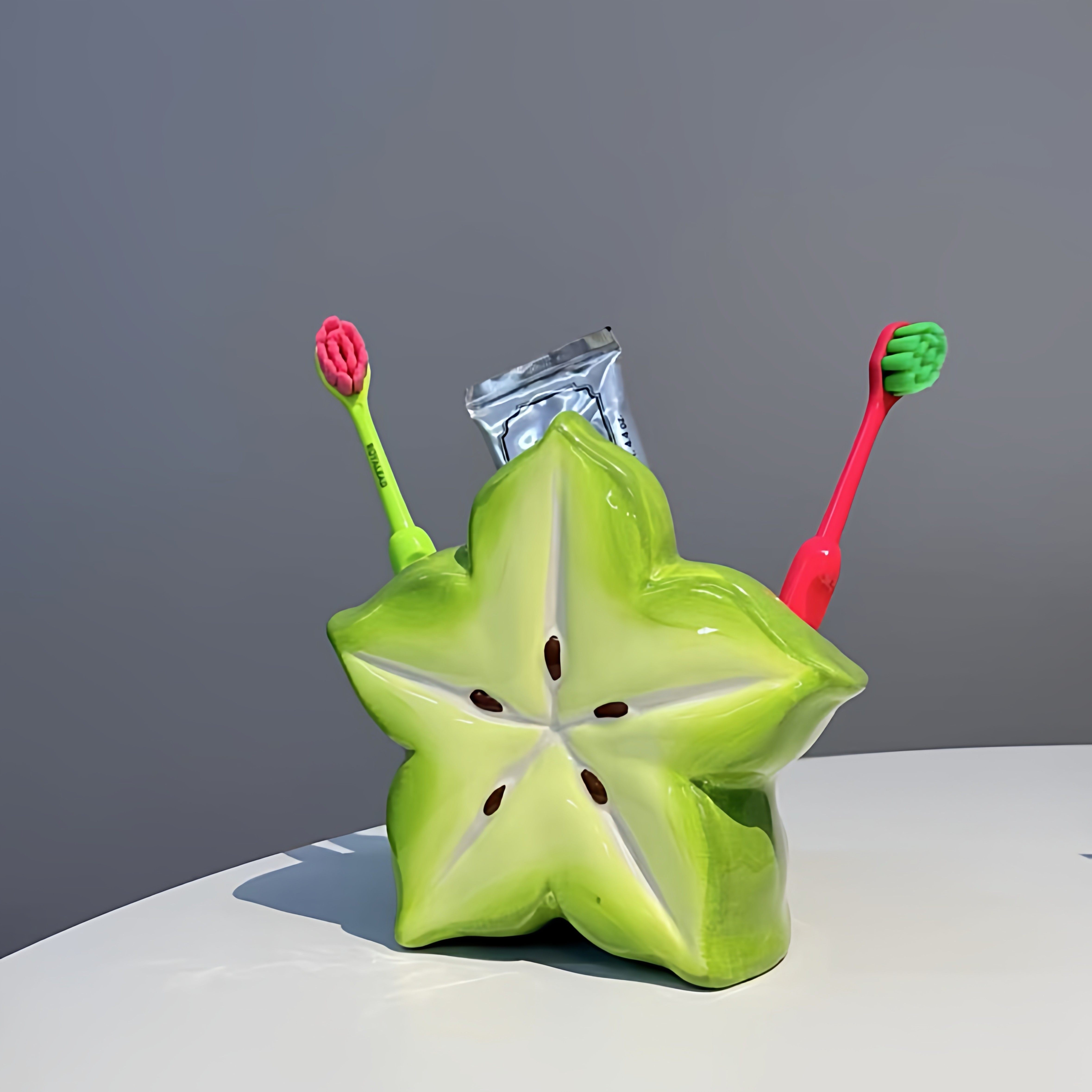 创意杨桃牙刷架多巴胺家用卫生间陶瓷牙膏置物架可爱台面收纳架