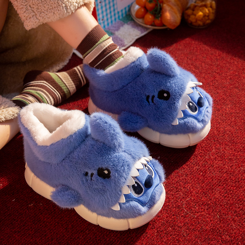荣耀鹿卡通鲨鱼棉拖鞋男包跟保暖