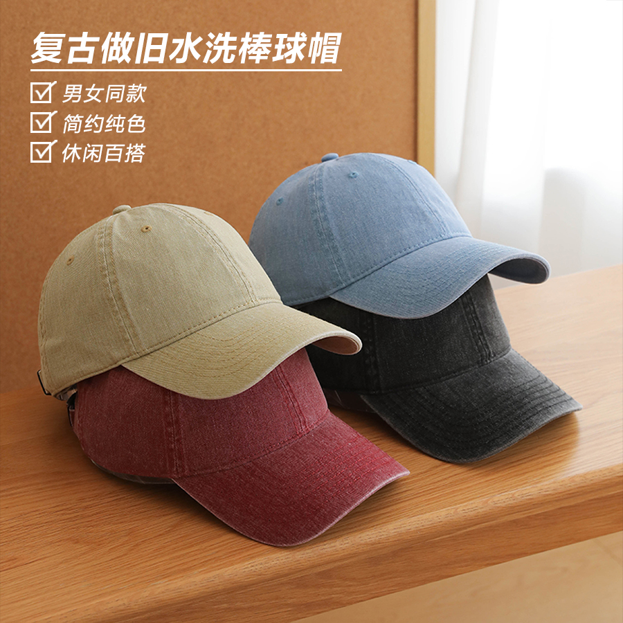 不挑人纯色帽子春夏水洗做旧棒球帽简约光版软顶鸭舌帽男女同款潮
