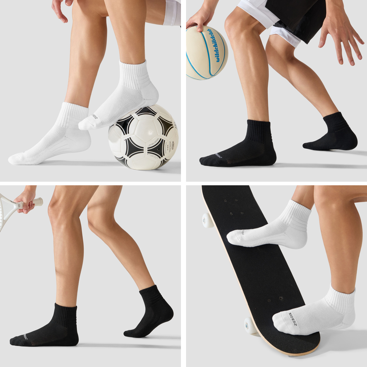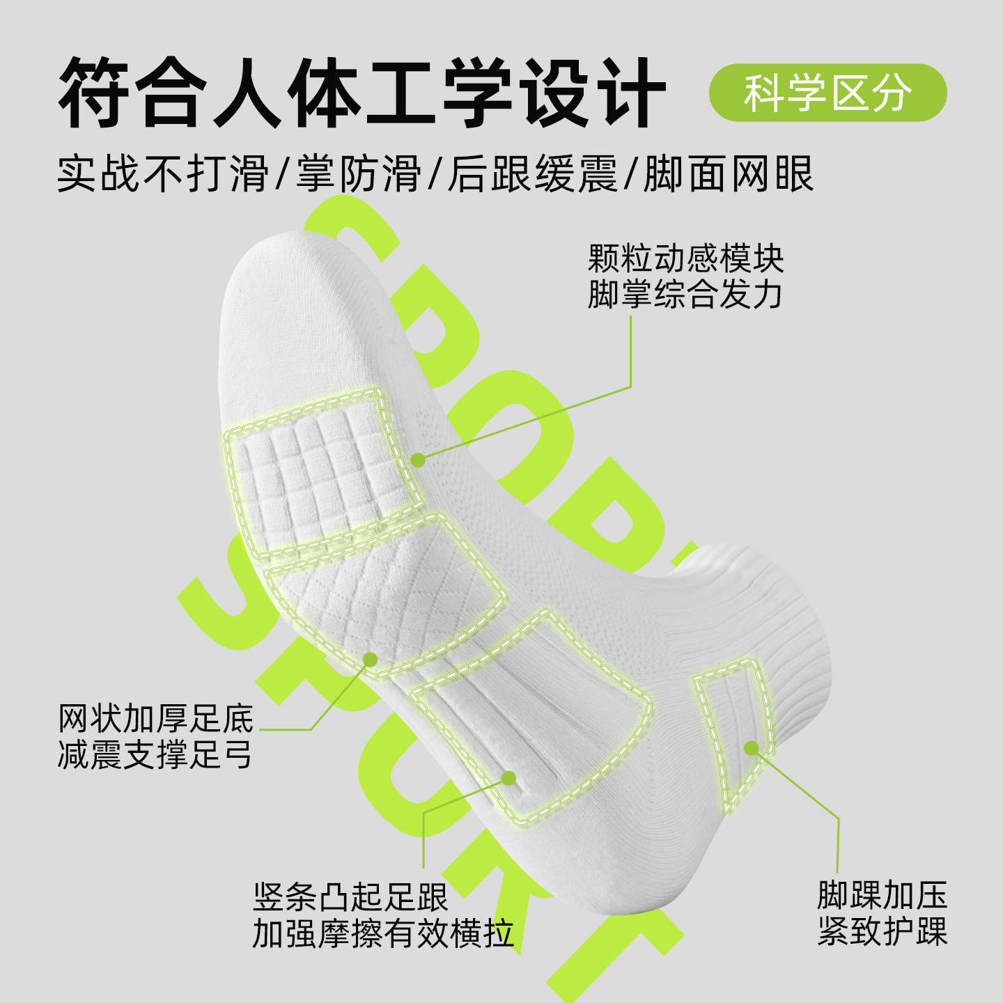 佐印袜子男秋冬季短袜纯棉纱线男款防臭透气抗菌运动防滑白色短筒